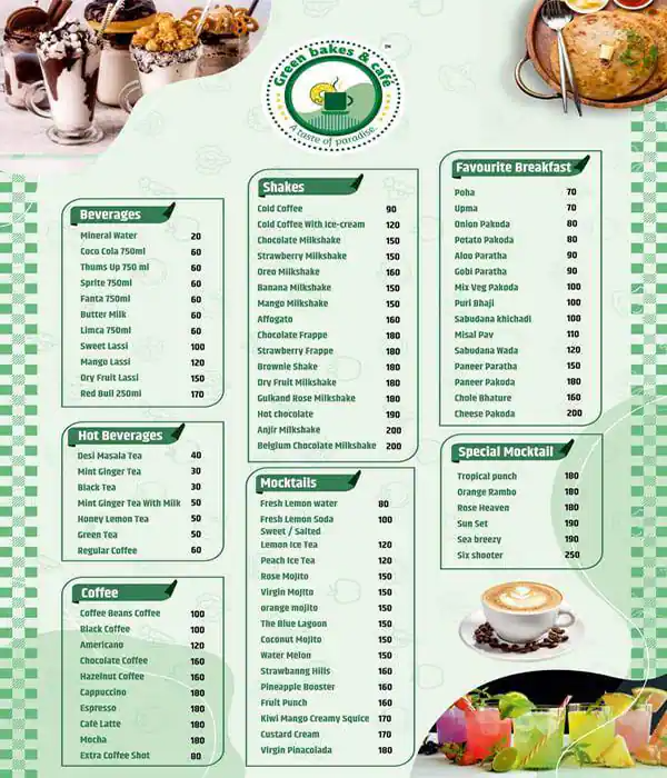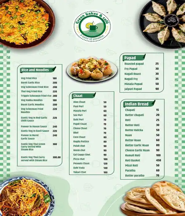 Green Bakes & Restaurant offers an extensive pure veg menu that caters to breakfast, lunch, and dinner cravings. Whether you’re in the mood for quick bites or a wholesome meal, the variety here won’t disappoint.